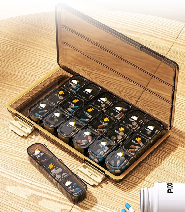알약 케이스는 의약품을 보관하고 휴대하기 위한 작은 보관용기입니다. 일반적으로 작고 휴대하기 편리하며, 각 알약을 따로 보관할 수 있는 디자인이 많습니다. 알약 케이스는 일상생활에서 의약품을 휴대하거나 여행 시에 특히 유용하게 사용됩니다. 알약 케이스의 주요 특징은 다음과 같습니다: 구획별 보관: 알약 케이스는 일반적으로 각 알약을 구분하여 보관할 수 있는 다양한 구획을 가지고 있습니다. 이는 특정 시간대에 복용해야 하는 약물을 정확하게 분리하여 휴대할 수 있게 도와줍니다. 소형 및 휴대용: 알약 케이스는 작고 가벼워서 휴대가 편리합니다. 주머니나 핸드백에 간편하게 넣을 수 있어 언제든지 필요한 약물을 손쉽게 챙길 수 있습니다. 안전 잠금장치: 몇몇 알약 케이스는 안전을 강화하기 위해 잠금장치를 포함하고 있습니다. 이는 알약이 무단으로 떨어지거나 열리는 것을 방지하여 안전성을 높입니다. 내구성 및 방수성: 일부 알약 케이스는 내구성이 뛰어나고 방수 처리가 되어 있어 알약을 보다 안전하게 보관할 수 있도록 되어 있습니다. 알약 케이스는 다양한 크기와 디자인으로 제공되므로 사용자의 개인적인 취향과 필요에 따라 선택할 수 있습니다. 여행이나 일상 생활에서 의약품을 휴대할 때 편리하게 사용할 수 있는 제품 중 하나입니다.