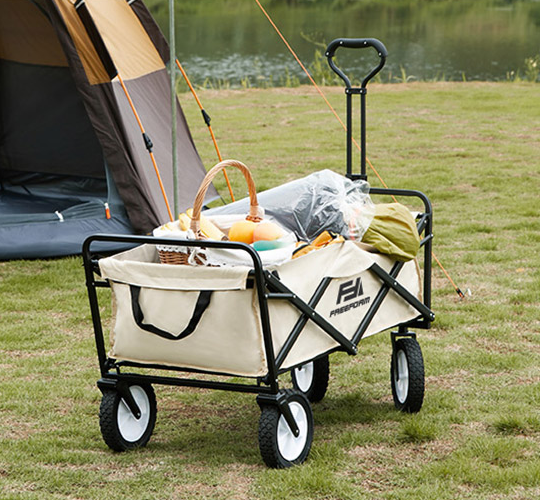 접이식 디자인대부분의 캠핑 웨건은 접이식 디자인으로 제작되어 사용하지 않을 때는 간편하게 접어서 보관할 수 있습니다. 이는 차량에 실을 때나 집에서 보관할 때 공간을 절약할 수 있어 매우 유용합니다.
